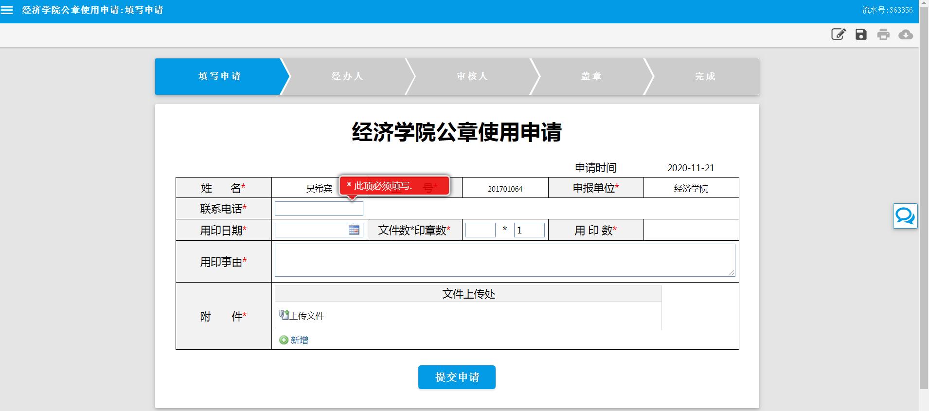 为提高行政办公效率,更好服务全院师生,学院公章现采取服务门户线上申请办理。具体流程如下: