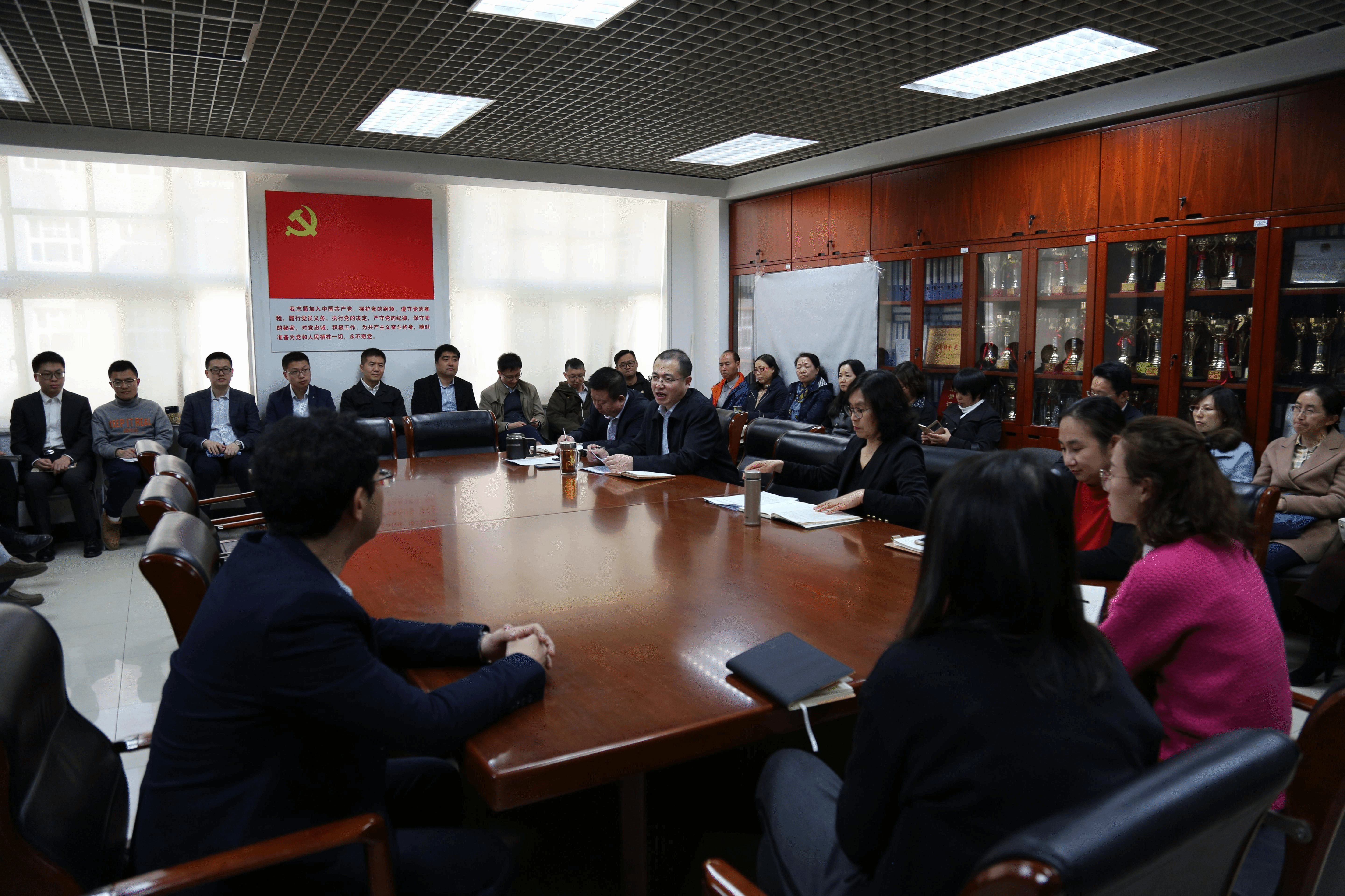 会上,张玉刚首先带领大家学习了2019年全国两会精神,包括习近平总书记看望政协文化艺术界、社会科学界委员并参加联组会的讲话精神、习近平总书记在参加内蒙古、甘肃、河南、福建、解放军和武警部队代表团审议时的重要讲话精神,重点学习生态保护、脱贫攻坚、乡村振兴等方面的内容。