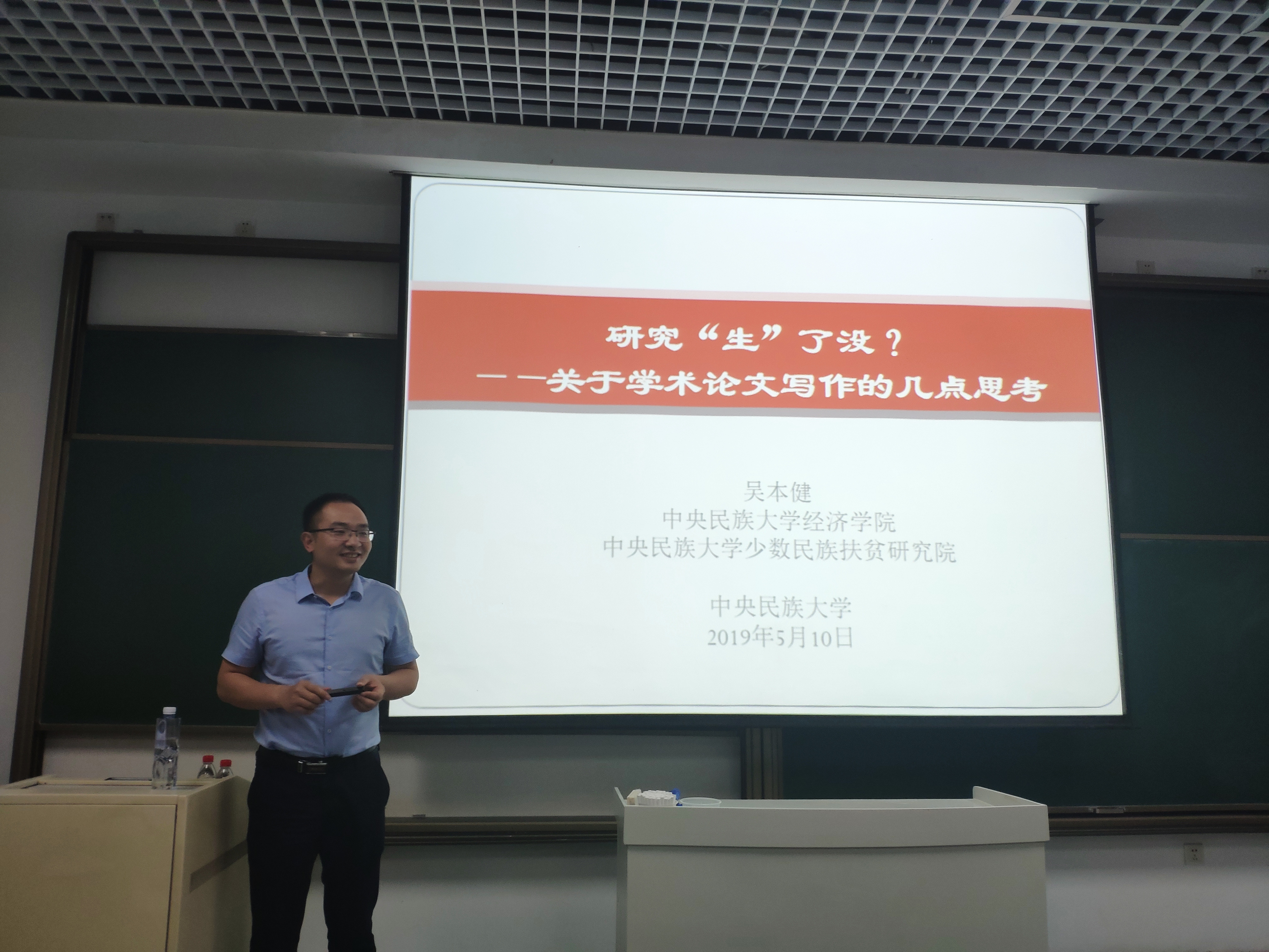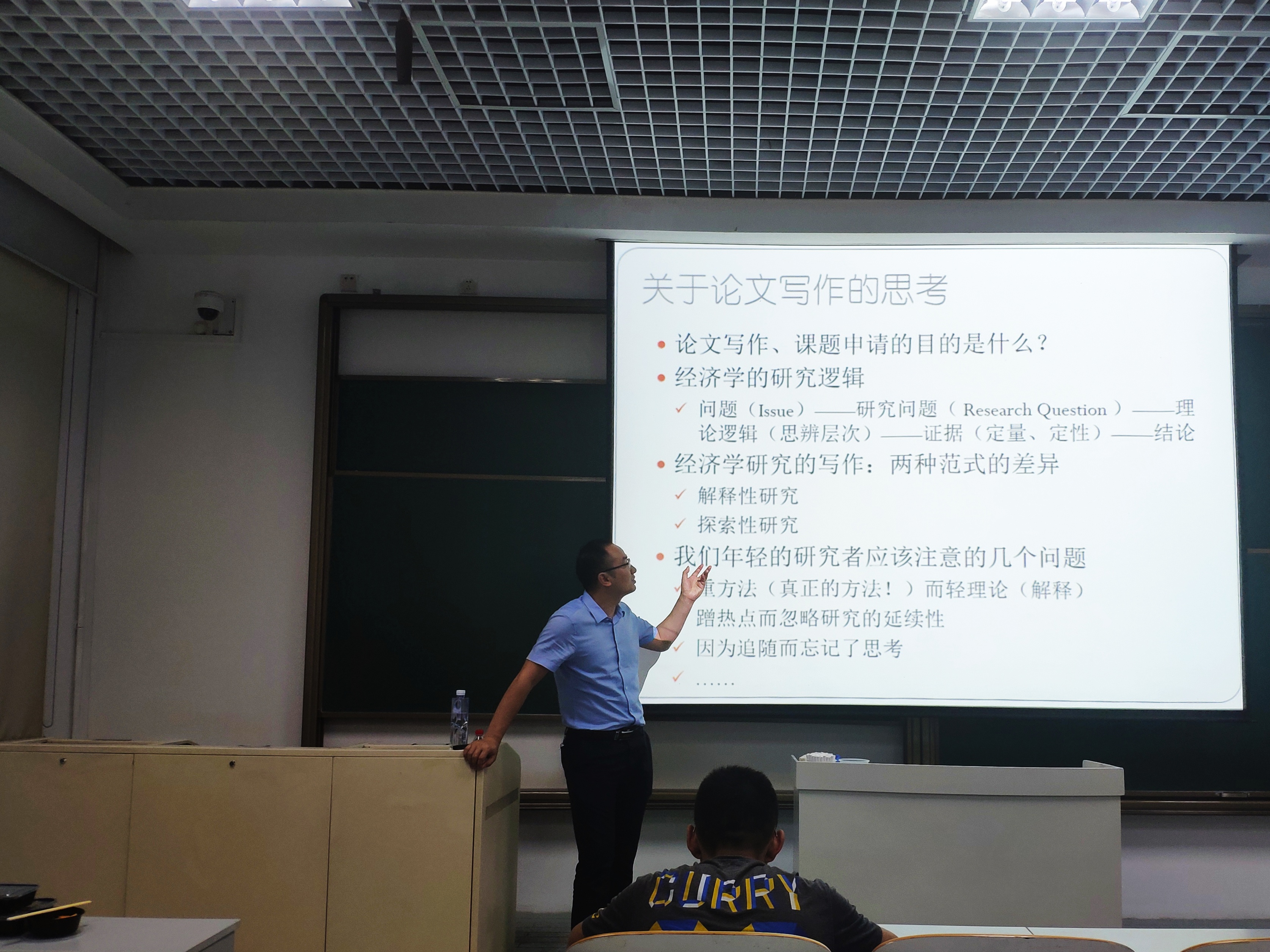 本期交流会上,吴老师分享的主题为《研究“生”了没?——关于学术论文写作的几点思考》。他结合个人经历、学院的学术氛围以及教育部对研究生培养要求的转变,为同学们解答了研究生阶段面临的困惑,生动形象地总结了经济学类学术论文的研究逻辑,并提出一些学术研究时应注意的问题。吴老师干货满满的分享,使同学们深受启发。在随后的提问环节,同学们踊跃发言,向吴老师请教了学术写作中遇到的问题,与老师进行了双向交流。此次学术交流活动在同学们的阵阵掌声中画上了圆满的句号。