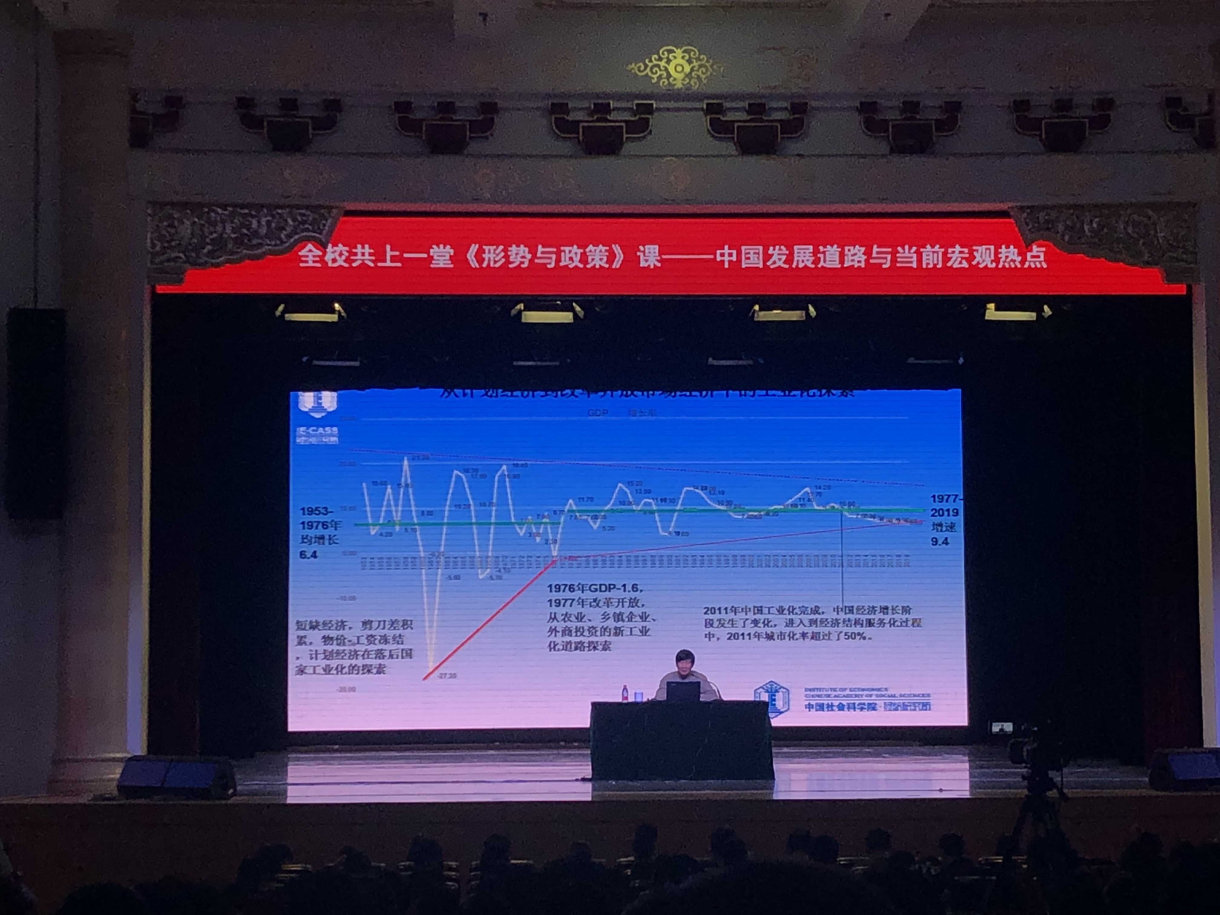 为使当代大学生更好地理解中国的发展历程以及当今宏观热点问题,5月22日晚,william威廉中文官网大一至大三全体学生齐聚大礼堂,共同聆听“形势与政策”课——“中国发展道路与当前宏观热点”讲座。现国家金融与发展实验室副主任、原中国社会科学院经济研究所副所长、二级研究员张平为此次大课堂的主讲人。