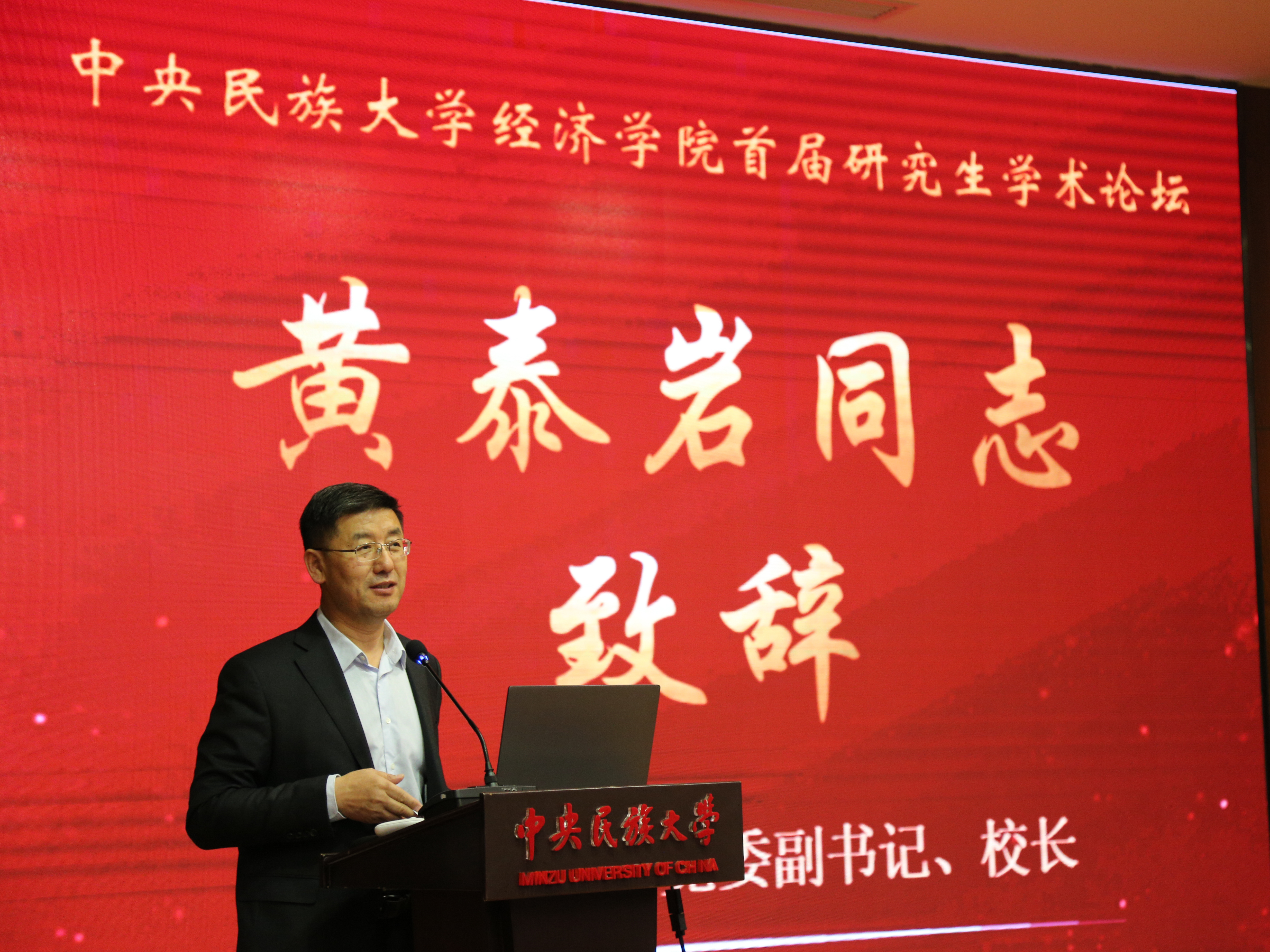 2019年12月27日上午9点,中央民族大学william威廉中文官网首届研究生学术论坛在知行堂隆重召开。中央民族大学党委副书记、校长黄泰岩出席并致辞。