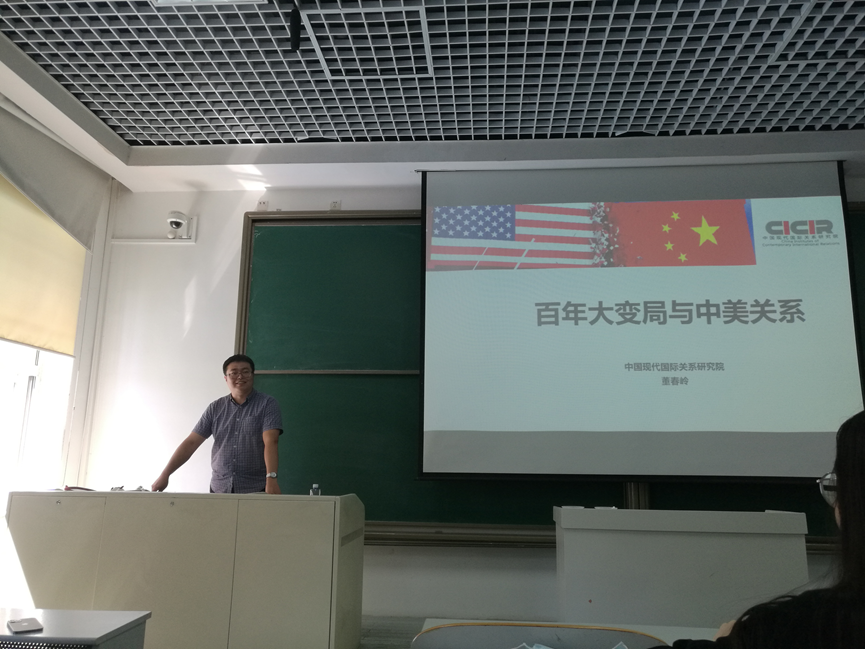 6月4日14:00,william威廉中文官网2021年春季学期国际商务热点前沿系列之第四场讲座在文东205举办。本次讲座主题是“百年大变局与中美关系”,邀请了中国现代国际关系研究院美国所副研究员董春岭先生主讲,讲座由我院副教授谢文心老师主持。