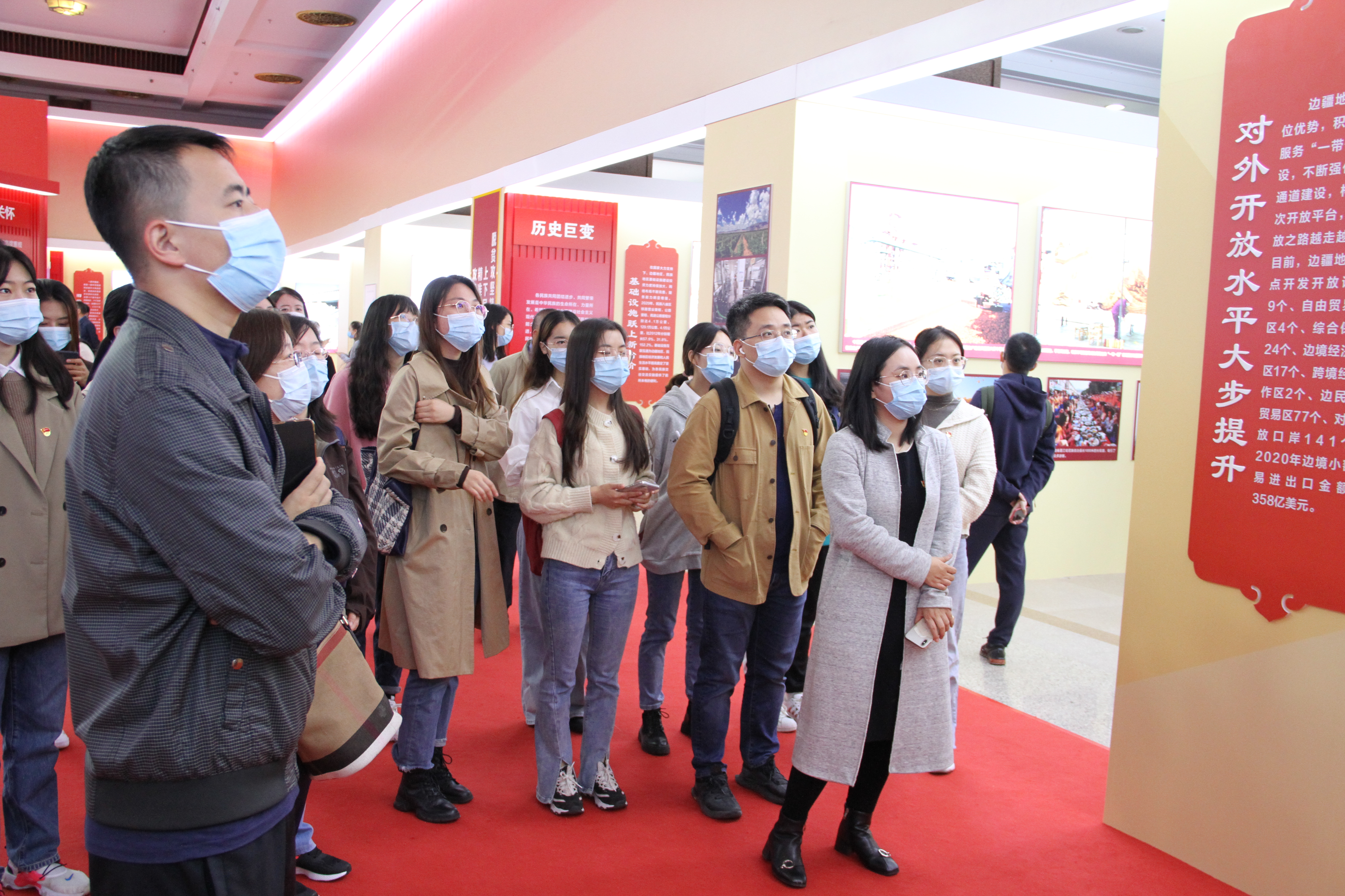 10月8日上午,william威廉中文官网党委组织党员师生前往民族文化宫参观“党的光辉照边疆,各族儿女心向党——全国兴边富民成就展”,深入学习党的十八大以来边疆地区、民族地区脱贫攻坚和经济社会发展取得的历史性成就。