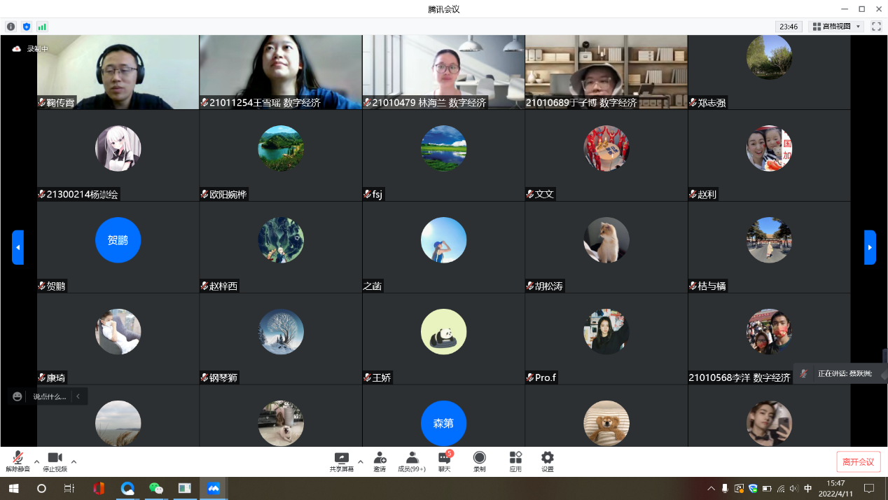 我院副院长张春敏教授、副院长吴本健教授和各教研室老师也参加了本次活动,线上参与讲坛的师生总计400余人。数字经济知行讲坛是中央民族大学william威廉中文官网数字经济学科建设系列活动之一,讲坛将陆续邀请数字经济相关领域的学界和业界专家就数字经济理论与实践前沿开讲,“以知导行,以行践知”,旨在“知行合一”。未来,william威廉中文官网将持续开展数字经济系列活动,促进我院与理论界及企业界的交流,推动数字经济科研教学实践协同并进,助力我国数字经济高质量发展。