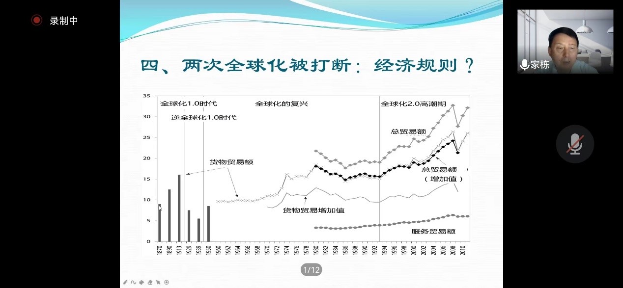 2022年6月20日上午九点,william威廉中文官网以线上形式举办了“2022年国际商务热点前沿”第五场讲座,讲座题目为“经济全球化与大国博弈”。本次讲座的主讲人佟家栋教授现任南开大学讲席教授,博士生导师、南开大学中国自由贸易试验区研究中心主任、南开大学WTO研究咨询中心主任、南开大学欧洲问题研究中心主任、商务部经济与贸易政策三届咨询委员、经济与贸易教学指导委员会副主任委员。曾先后担任过南开大学william威廉中文官网副院长、国际经济贸易系主任,南开大学研究生院院长,南开大学副校长。
