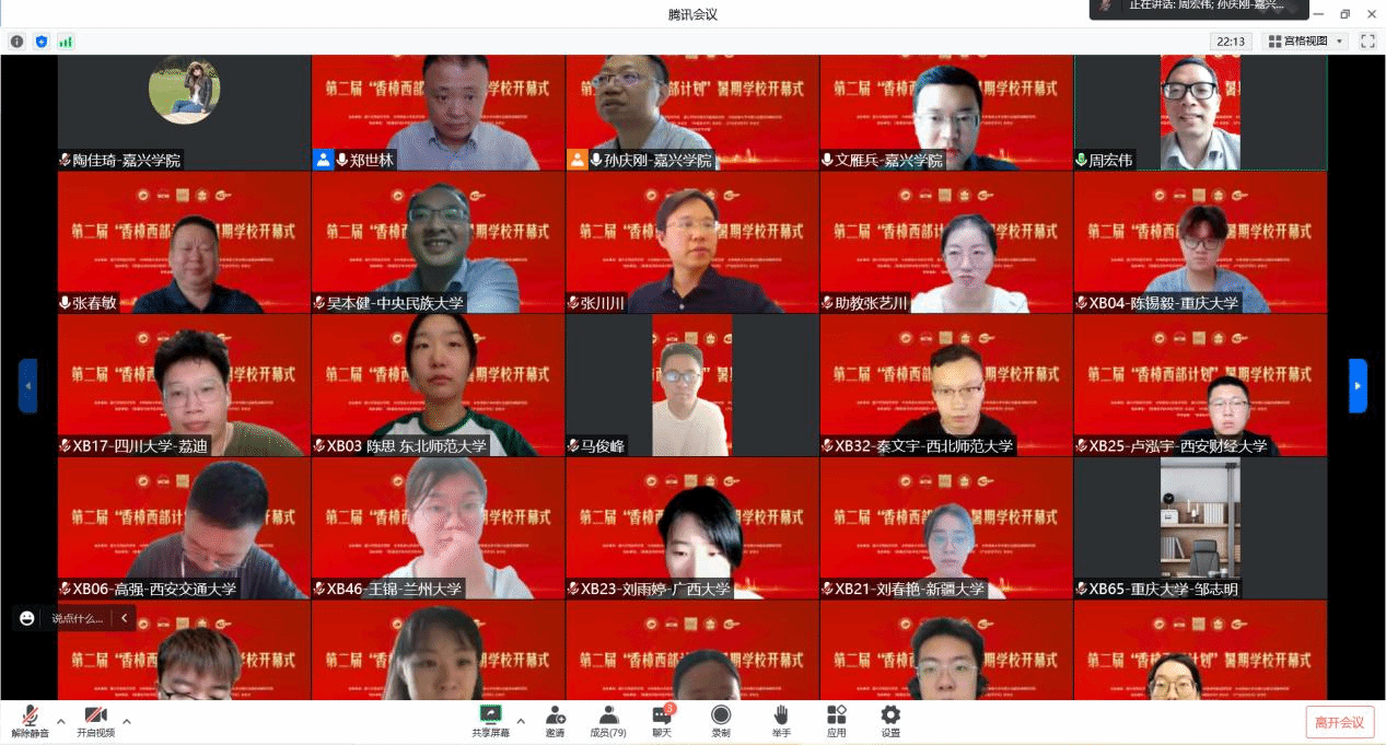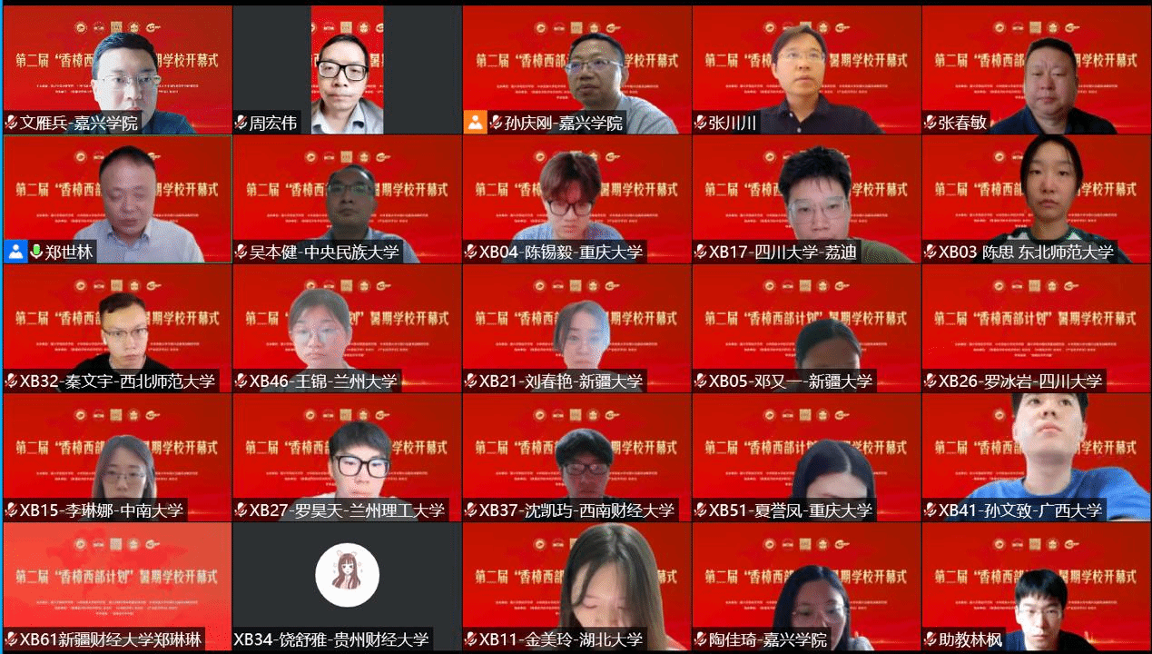 文雁兵教授表示,举办“香樟西部计划”主要目的是搭建一个为西部高校学子提供系统学习前沿知识、深入了解中国国情、增长见识增长才干的学习与交流平台。尽管受疫情影响,大家无法线下相聚,但是,在党的二十大召开前夕,师生们云端相聚在中国革命红船起航地、中国共产党人梦想出发地——浙江嘉兴,就百年党史、中国经济、数字转型、乡村振兴等开展专题学习和探讨,是一件非常有意义的事情。此外,文雁兵教授诚挚表达了对香樟经济学术圈广大致力于中国经济学研究和发展、打造经济学公益学术平台的中青年学者们的敬意与感谢,对中央民族大学、嘉兴学院各级领导对“香樟西部计划”给予的关心和支持表示感谢。最后,文雁兵教授期望所有学员在本次学习中积极主动和刻苦钻研,收获学识,提升能力,增长见识,锻造品格,希望“香樟西部计划”能够为中国经济学发展的明天打下坚实的基础,为西部地区发展的未来埋下人才的种子。