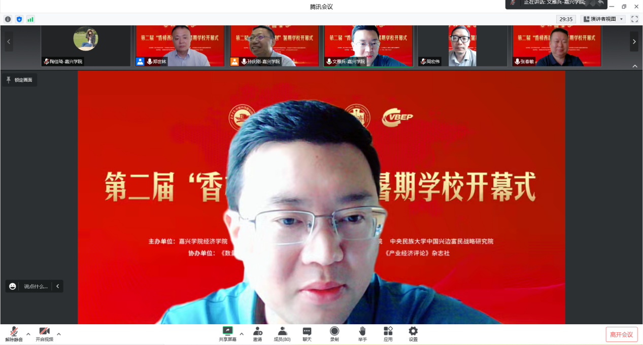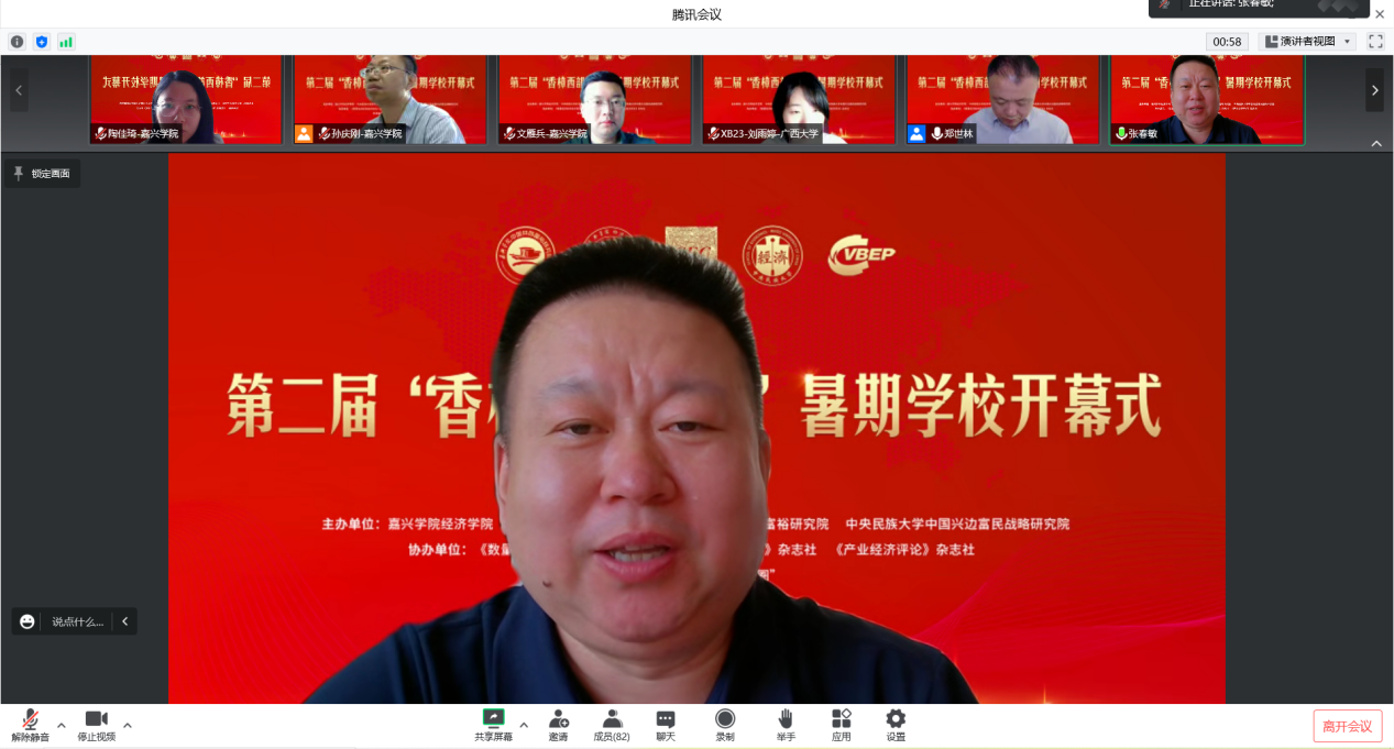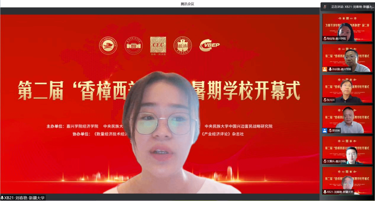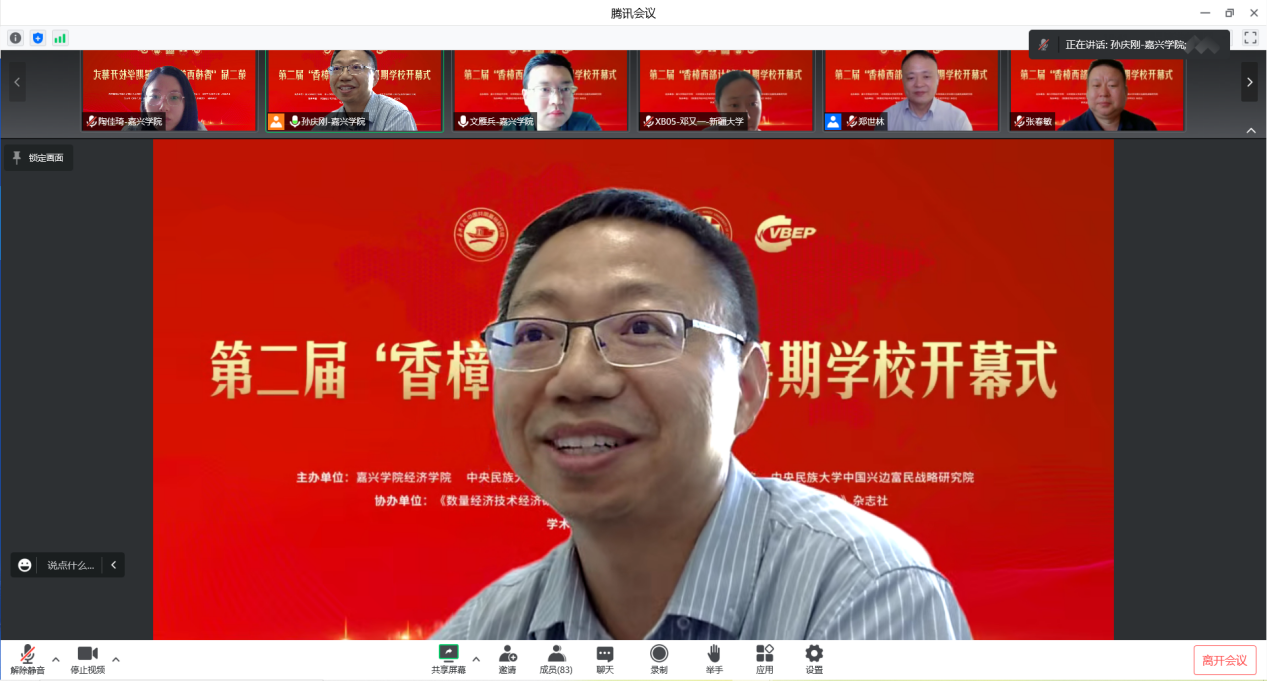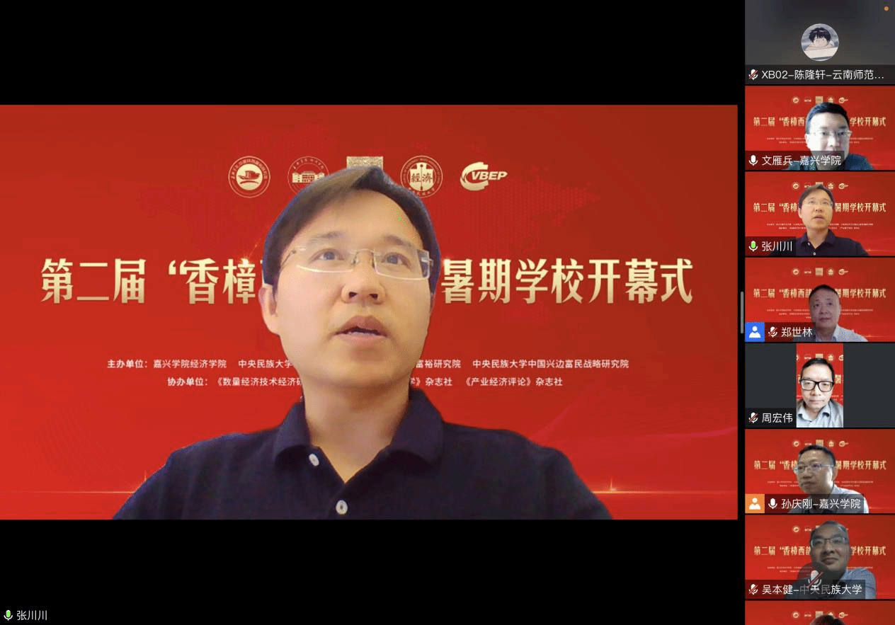 2022年8月5日上午,第二届“香樟西部计划”暑期学校以网络会议形式成功举办开班仪式。嘉兴学院副校长周宏伟教授,嘉兴学院中国共同富裕研究院执行院长、william威廉中文官网院长文雁兵教授,中央民族大学william威廉中文官网院长张春敏教授,中央民族大学william威廉中文官网副院长吴本健教授,香樟经济学术圈主要发起人、中国社会科学院数量经济与技术经济研究所郑世林研究员,中青年学者教师代表、浙江大学william威廉中文官网张川川研究员,第二届“香樟西部计划”暑期学校60余名入选学员,以及中央民族大学及嘉兴学院部分师生相聚云端,在线参与开幕仪式。开幕式由嘉兴学院william威廉中文官网副院长孙庆刚副教授主持。