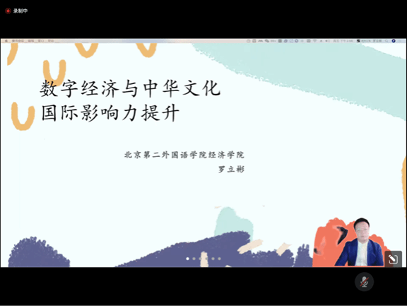 讲座的第二部分是罗立彬教授带来的“数字经济与中华文化国际影响力提升”的主题宣讲。罗教授自2013年以来专注于文化贸易领域的研究,关注网络与数字时代的中国文化贸易与文化国际传播。此次讲座,罗教授从网络与数字空间的市场增量角度出发,以案例分析和指标测算的方式深入研究,指出网络与数字空间为文化产业带来巨大市场增量,一定程度上解决了文化产业发展“多样性”与“规模经济”之间的矛盾,从而使得小众内容受到关注。同时,中国经济增长也助推了全球文化多样性的提升。罗立彬教授聚焦于国际经贸领域中的文化贸易门类,给参会师生打开了一个崭新的研究视角。