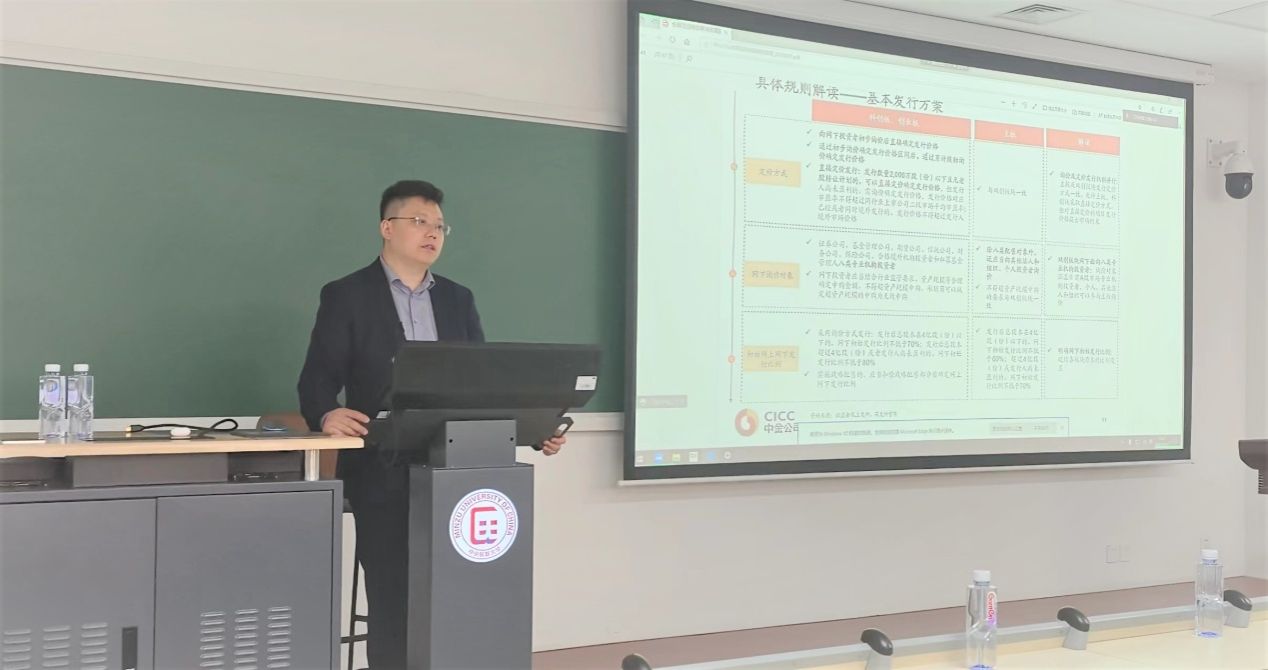 2023年3月31日下午,在中国证券协会的大力支持下,中国国际金融股份有限公司投资银行部董事总经理赵言应邀在学校丰台校区日新楼214室为我院师生作了题为《全面注册制的影响及展望》的专题讲座。william威廉中文官网副院长吴本健、中国证券业协会投教部马雪程先后致辞,中金公司相关部门专家王立、王锦博、曾军出席。讲座由william威廉中文官网金融专硕中心主任陶春生教授主持。