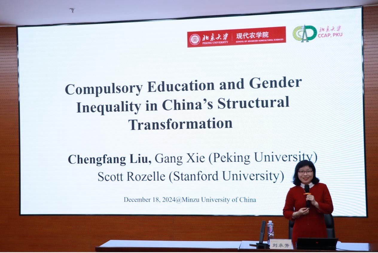 会议上半场聚焦于普惠金融的核心对象——“三农问题”。刘承芳、龙文军和穆月英分别以“义务教育与中国结构转型中的性别不平等”“引导金融支持农业农村现代化”“我国粮食生产水资源的时空匹配与优化路径”为题作报告。