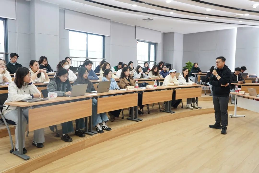 在互动环节,金摇光以深厚专业素养为同学们答疑解惑、指明方向,并向同学们强调,创新创业项目应当紧密围绕利用AI解决社会现实痛点、攻克创作瓶颈、承接非遗与红色文化传承重任、找到科技与文化的结合点等方向发力,切实彰显项目的现实意义与社会担当。