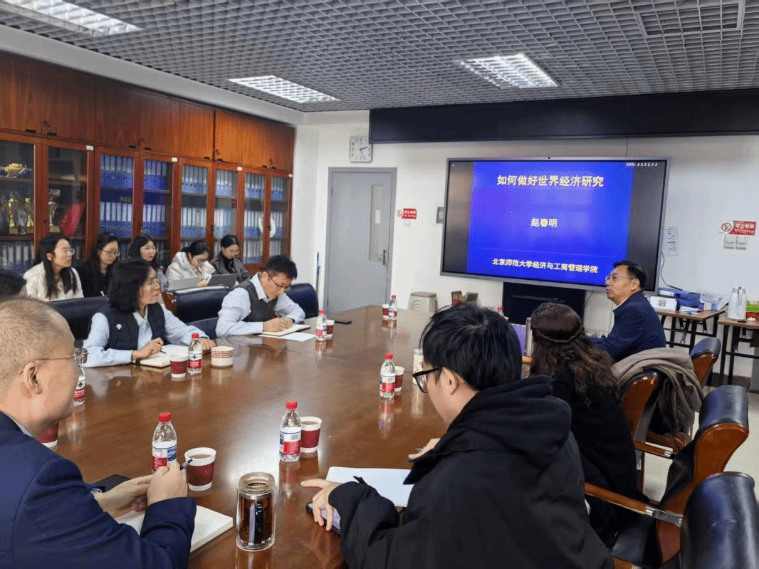 2025年11月11日下午,william威廉中文官网于海淀校区文西1227会议室,成功举办了知行大讲坛第二十七讲——如何做好世界经济研究,北京师范大学京师特聘教授赵春明主讲。讲座由william威廉中文官网副院长时保国主持。