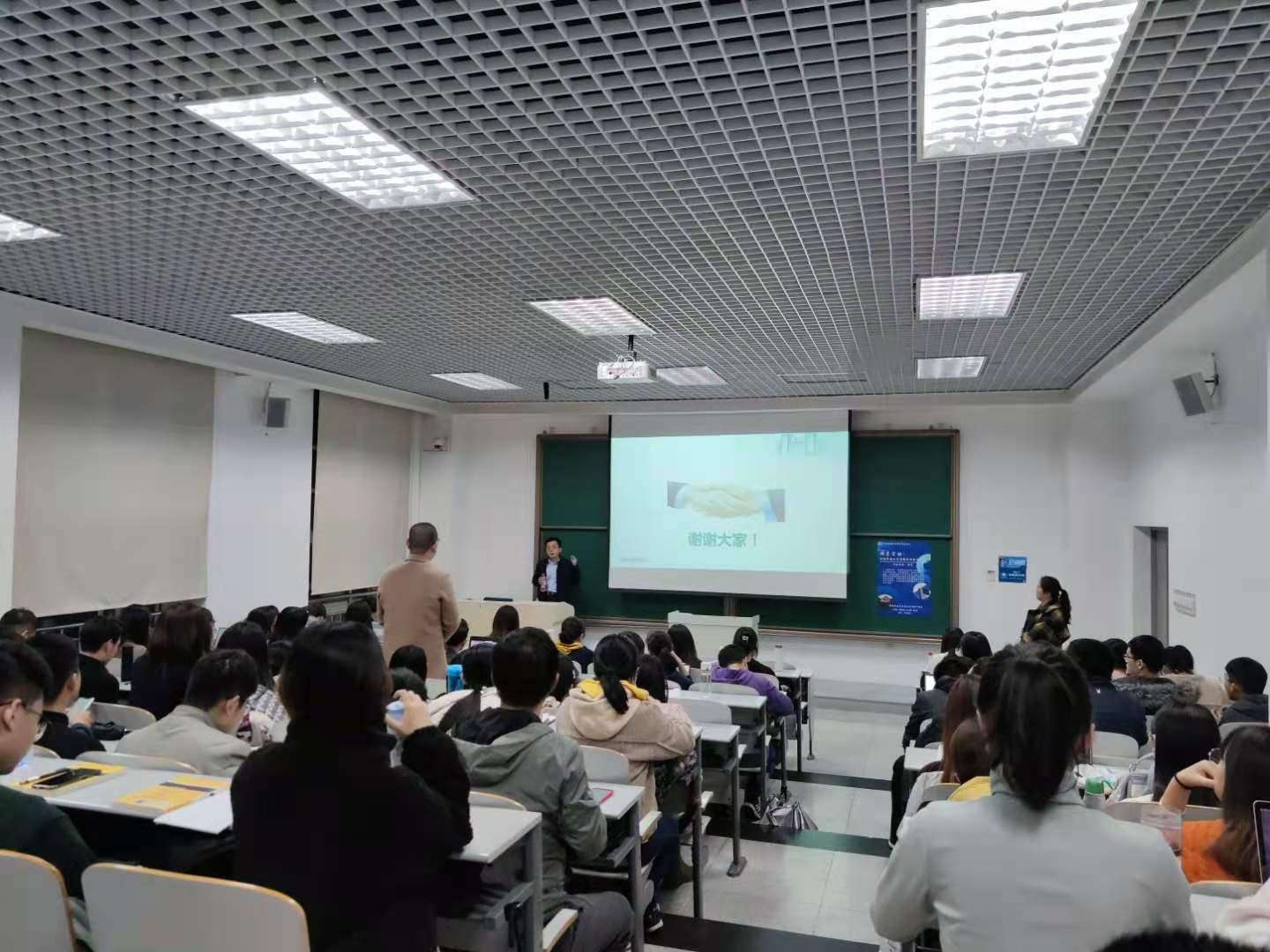 讲座现场,杨哲博士以现实生活中普通人办理金融业务的方式演变为切入点,结合自身工作实践详细介绍场景金融的演变、商业银行场景金融的发展现状与未来趋势,并就师生所提的相关问题给予了详尽细致的回答。杨哲博士的讲座,使同学们积累了场景金融领域的相关知识,拓宽了视野,为课题研究和未来的职业方向选择提供了很好的帮助。