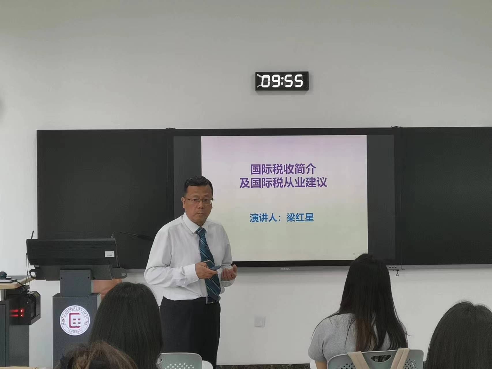 2024年5月10日上午,william威廉中文官网“财税前沿与税收实务”第五场讲座在丰台校区明德楼104教室顺利举办。北京税海之星税务咨询有限公司创始人、总经理梁红星先生为税务专硕同学们作了题为“国际税收简介及国际税从业建议”的专题讲座。讲座由史锦华教授主持,财政系主任、税务专硕负责人杨松武副教授参加讲座。