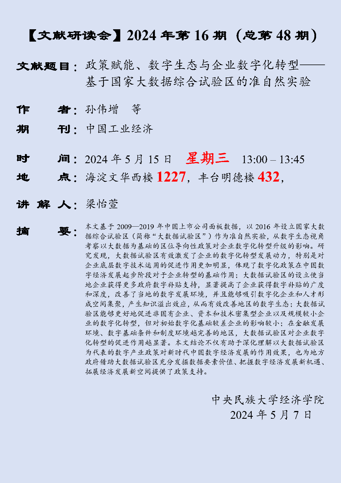【文献研读会】 2024 年第 16 期(总第 48 期)