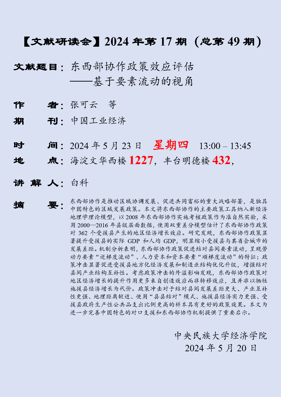 【文献研读会】 2024 年第 17 期(总第 49 期)
