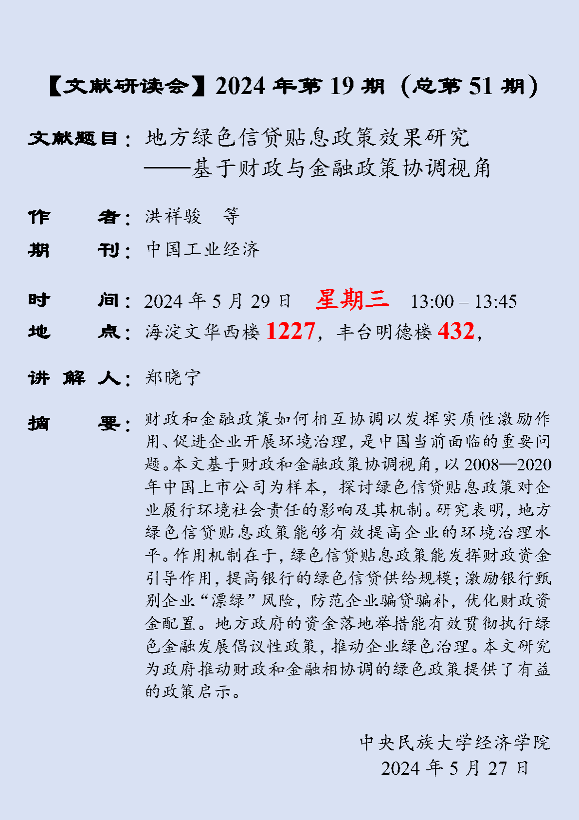 【文献研读会】 2024 年第 19 期(总第 51 期)