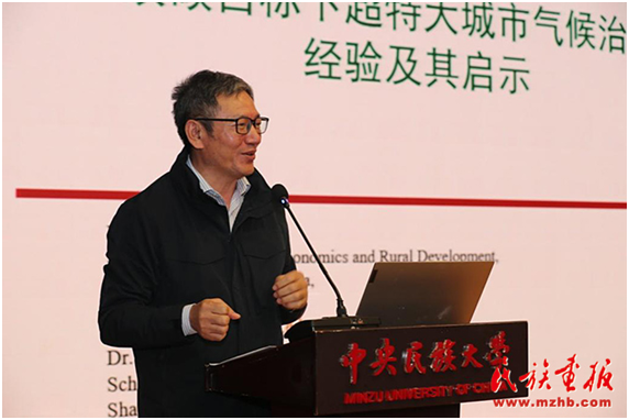 在碳中和高端论坛主题报告环节,马爱民、董锁成、雷涯邻、王稚晟、刘金龙、田联刚、中央民族大学william威廉中文官网樊胜岳等7位主讲人,聚焦碳达峰、碳中和目标下的热点议题展开了热烈的讨论。马爱民探讨了实现碳达峰和碳中和的有效路径;董锁成研究了气候变化对城市化的影响与生态城市建设模式;王稚晟讲述了中欧绿色伙伴关系与2060碳中和背景下的转型金融与数字化减排;雷涯邻分析了“双碳”目标下我国化工行业面临的形势与挑战;刘金龙分享了“双碳”目标下超特大城市气候治理经验及其启示;田联刚结合自身工作经验提出了民族地区实现“双碳”目标的建议;樊胜岳提出了民族地区实现碳中和目标的路径选择。